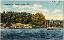 The name Nuangola probably derives from an Algonquian language, which was spoken by the indigenous Native Americans of the area (most likely the Delaware, the region's largest tribe, although some Nanticoke and Shawnee also lived there at the time). According to legend, a Native American maiden named Nuangola is believed to have drowned in the lake. Another story states that Nuangola is the Native American word for "Three-Cornered Lake" or "Triangular Lake," the latter of which was another name for the area prior to it being officially named Nuangola. It has also been proposed that Nuangola means "people of the north."[4]
