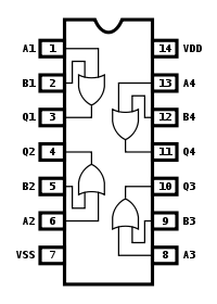 - 74LS32: quad 2-input OR gate (low power Schottky version)