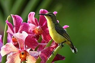 The olive-backed sunbird (Cinnyris jugularis), also known as the yellow-bellied sunbird, is a species of sunbird found from Southern Asia to Australia.