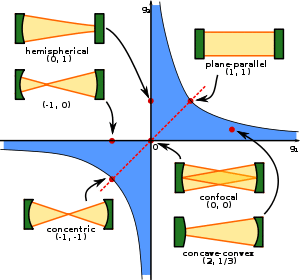 A simple geometric statement describes the regions of stability: A cavity is stable if the line segments between the mirrors and their centers of curvature overlap, but one does not lie entirely within the other.