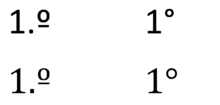 Ordinal indicators may also be underlined. In Brazil underlining is mandatory,[7] in Portugal it is not mandatory[8] but it is "advisable" to avoid confusion[6] with the degree sign.