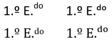 In Spanish, using the two final letters of the word as it is spelled is not allowed,[3] except in the cases of primer (an apocope of primero) before singular masculine nouns, which is not abbreviated as 1.º but as 1.er, of tercer (an apocope of tercero) before singular masculine nouns, which is not abbreviated as 3.º but as 3.er, and of compound ordinal numbers ending in "primer" or "tercer". For instance, "twenty-first" is vigésimo primer before a masculine noun, and its abbreviation is 21.er. Since none of these words are shortened before feminine nouns, their correct forms for those cases are primera and tercera. These can be represented as 1.ª and 3.ª. As with other abbreviations in Spanish, the ordinal numbers have a period ".", which is placed before the indicator. Portuguese follows the same method.[4]