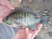 | Oreochromis leucostictus, male, from a fishpond near Songea, Tanzania, in 2012. | |