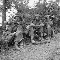 In mid 1942 the battalion was sent to India where they became part of the 74th Indian Infantry Brigade attached to 25th Indian Infantry Division. The 6th Ox and Bucks served on the Arakan Front during the advance down the west coast of Burma in 1944/45. The battalion fought at Akyab in 1944 and at the main Japanese Base at Tamandu in 1945. The 2nd Ox and Bucks following their return from Germany in May 1945 were due to be deployed to the Far East in South-East Asia Command. An advance party of the 2nd Ox and Bucks, led by Lieutenant Peter Gerahty, was in India in August 1945 preparing for an airborne assault on Malaya[63] when the Japanese surrendered. The 6th Ox and Bucks was disbanded shortly after the end of the war, on 5 December 1945, and most of the men were either demobilised (mainly those who had been with the battalion since its creation) or transferred to the 1st Battalion, Royal Warwickshire Regiment.[99]