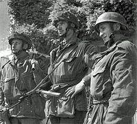 D Company landed very close to their objectives at 16 minutes past midnight (the first Allied unit to land in France). The soldiers poured out of their battered gliders, completely surprising the German defenders, and taking the bridges within 10 minutes, losing two men – Lieutenant Den Brotheridge and Lance corporal Fred Greenhalgh – in the process. A further two officers and 14 soldiers were wounded during the battle for the bridges. Lieutenant Den Brotheridge led the first platoon to land at Pegasus Bridge followed one minute later by Lieutenant David Wood's platoon. Lieutenant Dennis Fox led the first platoon to land at Horsa Bridge. The glider carrying Captain Brian Priday and Lieutenant Tony Hooper's platoon, which was assigned to the capture of Horsa Bridge, landed at the bridge over the River Dives, some seven miles from where they intended. In spite of this, the occupants of the glider captured the River Dives bridge, advanced through the German lines towards the village of Ranville where they eventually rejoined the British forces. The Ox and Bucks platoons holding the bridges were relieved by the 7th Battalion of the Parachute Regiment at 03:00hours.[74] The Germans attempted to re-capture the bridges, but were repulsed. Later in the day, at about 13:00hrs, Lord Lovat and elements of the Commandos of his 1st Special Service Brigade arrived to relieve the exhausted defenders, followed by the 3rd British Infantry Division. The operation was immortalised in the film The Longest Day.[75]