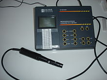The type of oxygen sensor used in most underwater diving applications is the electro-galvanic oxygen sensor, a type of fuel cell, which is sometimes called an oxygen analyser or ppO2 meter. They are used to measure the oxygen concentration of breathing gas mixes such as nitrox and trimix.[9] They are also used within the oxygen control mechanisms of closed-circuit rebreathers to keep the partial pressure of oxygen within safe limits.[10] and to monitor the oxygen content of the breathing gas in saturation diving systems and of surface supplied mixed gas. This type of sensor operates by measuring the voltage generated by a small electro-galvanic fuel cell.