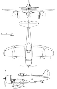 The U.S. sent 203 P-47Ds to the Soviet Union.[29] In mid-1943, the Soviet high command showed an interest in the P-47B. Three P-47D-10-REs were ferried to the Soviet Air Forces (VVS) via Alaska in March 1944. Two of them were tested in April–May 1944. Test pilot Aleksey N. Grinchik noted the spacious cockpit with good ventilation and a good all-around view. He found it easy to fly and stable upon take-off and landing, but it showed excessive rolling stability and poor directional stability. Soviet engineers disassembled the third aircraft to examine its construction. They appreciated the high production standards and rational design well-suited to mass production, and the high reliability of the hard-hitting Browning machine guns. With its high service ceiling, the P-47 was superior to fighters operating on the Eastern front, yielding a higher speed above 30,000 feet (9,100 m). The Yakovlev Yak-9, Lavochkin La-5FN, Messerschmitt Bf 109G and Focke-Wulf Fw 190A outperformed the early model P-47 at low and medium altitude, where the P-47 had poor acceleration and performed aerobatics rather reluctantly. In mid-1944, 200 P-47D-22-REs and P-47D-27-REs were ferried to the USSR via Iraq and Iran. Many were sent to training units. Less than half reached operational units, and they were rarely used in combat.[30] The fighters were assigned to high-altitude air defense over major cities in rear areas. Unlike their Western counterparts, the VVS made little use of the P-47 as a ground attack aircraft, depending instead on their own widely produced—with 36,183 examples built during the war—special-purpose, armored ground-attack aircraft, the Ilyushin Il-2. At the end of the war, Soviet units held 188 P-47s.[30]