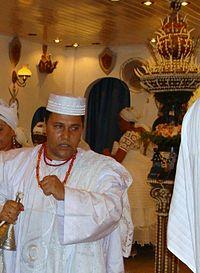 A pai-de-santo (Portuguese pronunciation: [ˈpaj dʒi ˈsɐ̃tu]) is a male priest of Umbanda, Candomblé and Quimbanda, the Afro-Brazilian religions. In Portuguese those words translate as "father of [the] saint[s]", which is an adaption from the Yoruba language word babalorishá, a title given to the African religion's priests. Babá means father, and the contraction l'Orishá means "of Orishá". As a product of the syncretism, the word Orishá (elevated or ancestral spirit) was adapted into Portuguese as saint.