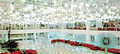 In addition to housing the Volkskammer, the Palast was intended as a multiple-use structure influenced by the concepts of Palaces of Culture and People's Houses popular with socialist movements. The Palast contained a large bowling alley at the lower level, from which the canal-side terrace along the River Spree could be accessed, and featured Brunswick lane equipment and a bar. The part of the Palace open to the public featured numerous cameras for the surveillance of staff and visitors by Stasi officials.[2] It was the first building in the GDR to feature a self-supporting steel skeleton and contained 5,000 tons of asbestos used for fire protection.