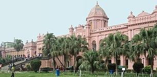 Most of the Palaces in Bangladesh are built by the Zamindars and Nawabs of British Bengal. Many magnificent palaces are found across the country. Among them Ahsan Manzil (also known as Pink Palace) built by the Nawabs of Dhaka, Tajhat Palace of Rangpur, Natore Palace, Puthia Rajbari of Rajshahi, Rose Garden Palace of Old Dhaka, Baliati Palace of Manikganj, Shashi Lodge of Mymensingh and Bangabhaban (Presidential Palace) are notable one.[23]