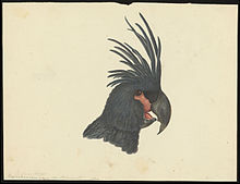 "Palm cockatoo" has been designated the official name by the International Ornithological Committee (IOC).[5] The species was named the "Goliath Aratoo" in Wood's Natural History (1862). It is also sometimes given the misnomer "black macaw" in aviculture - the macaws are unrelated New World parrots. Confusingly, this name was also used by early naturalists and Brazilian natives to refer to the dark blue hyacinth macaw.