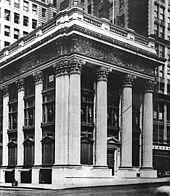 - ^ Federal Hall National Memorial, with its statue of George Washington, is seen on the right.