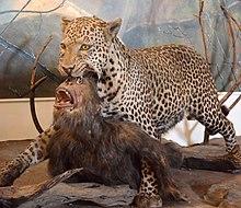The left foot of a P. boisei specimen (though perhaps actually belonging to H. habilis) from Olduvai Gorge seems to have been bitten off by a crocodile,[81] possibly Crocodylus anthropophagus,[82] and another's leg shows evidence of leopard predation.[81] Other likely Olduvan predators of great apes include the hunting hyaena Chasmaporthetes nitidula, and the sabertoothed cats Dinofelis and Megantereon.[61] The carnivore assemblage at the Cradle of Humankind comprises the two sabertooths, and the hyaena Lycyaenops silberbergi.[80]
