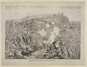 Methuen reached South Africa in November 1899 with orders to relieve Kimberley but initially just expelled the Boers from Belmont and Graspan.[12] He was slightly wounded at the Battle of Modder River.[17] He suffered both defeats and successes during the war. His greatest defeat was at the Battle of Magersfontein, during which he failed to carry out adequate reconnaissance and accordingly his artillery bombarded the wrong place leading to the Highland Brigade taking heavy casualties.[1] The battle was regarded as one of the three British disasters in "Black Week" that led to the despatch of Lord Roberts to South Africa.[12]