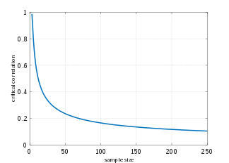 has a student's t-distribution in the null case (zero correlation).[20] This holds approximately in case of non-normal observed values if sample sizes are large enough.[21] For determining the critical values for r the inverse function is needed: