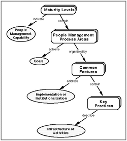 Related to fields such as human resources, knowledge management, and organizational development, the People CMM guides organizations in improving their processes for managing and developing their workforces. The People CMM helps organizations characterize the maturity of their workforce practices, establish a program of continuous workforce development, set priorities for improvement actions, integrate workforce development with process improvement, and establish a culture of excellence. The term was promoted in 1995, published in book form in 2001, and a second edition was published in July 2009.[1]