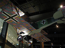 The Pfalz D.XIV was a derivative of the D.XII, utilizing the same fuselage and basic wing structure. The D.XIV differed primarily by replacing the 180 hp Mercedes D.IIIaü with the 200 hp Benz Bz.IVü, a substantially heavier engine.[11] To cope with the increased power and weight, the D.XIV featured longer span wings and an enlarged vertical stabilizer.[11] Enlarged ailerons were used to maintain rate of roll. A few prototypes were tested at the second Adlershof competition and a small production order ensued.[11] Production was quickly terminated, however, and the D.XIV did not see active service. The D.XIV did not offer an appreciable increase in performance over the D.XII, and the Benz Bz.IVü engine was needed for reconnaissance aircraft.[11]