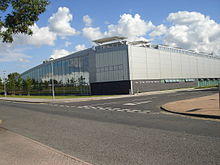 During the late 1960s the area was acquired by the Lee Valley Regional Park Authority (LVRPA) to form part of the Lee Valley Park.[6] The Pickett's Lock Sports Centre designed by the Williamson Partnership with J.M.V Bishop of the (LVRPA) It was described in the Buildings of England as being "three large white functional boxes arranged around a central swimming pool, linked by generous circulation areas. Made a little less bleak by additions of 1993-4: restaurant, cafe and cinema, and an entrance block by Fitzroy Robinson & Partners".[7] Also included were a nine-hole golf course and outdoor sports facilities and was completed by 1973 as the largest centre of its kind in Europe. One of the earliest International Events held at the centre was the first World Age Group Trampoline Championships which were organised by Ted Blake. In later years, land including a disused sewage farm to the north of the centre was used to extend the golf course, and includes a man-made water known as Ponders End lake 51°38′07″N 0°02′00″W / 51.6352°N 0.0333°W.
