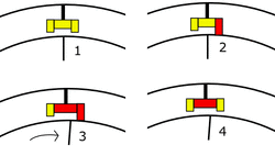 - Then the motive group releases, retracting the 'trailing' locking group.