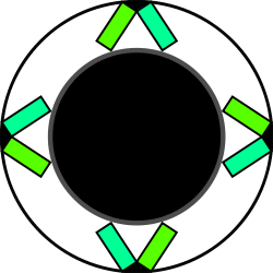 Very simple single-action stepping motors can be made with piezoelectric crystals. For example, with a hard and rigid rotor-spindle coated with a thin layer of a softer material (like a polyurethane rubber), a series of angled piezoelectric transducers can be arranged. (see Fig. 2). When the control circuit triggers one group of transducers, they push the rotor one step. This design cannot make steps as small or precise as more complex designs, but can reach higher speeds and is cheaper to manufacture.