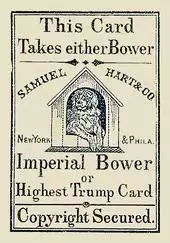 The United States introduced the joker into the deck. It was devised for the game of euchre, which spread from Europe to America beginning shortly after the American Revolutionary War. In euchre, the highest trump card is the Jack of the trump suit, called the right bower (from the German Bauer); the second-highest trump, the left bower, is the jack of the suit of the same color as trumps. The joker was invented c. 1860 as a third trump, the imperial or best bower, which ranked higher than the other two bowers.[73] The name of the card is believed to derive from juker, a variant name for euchre.[74][75] The earliest reference to a joker functioning as a wild card dates to 1875 with a variation of poker.[76]