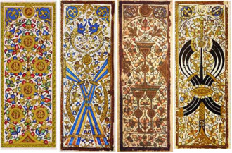Export of these cards (from Cairo, Alexandria, and Damascus), ceased after the fall of the Mamluks in the 16th century.[37] The rules to play these games are lost but they are believed to be plain trick games without trumps.[38]
