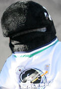 His Bio states that he can be found throughout the community as well as at all home games spreading Whalers pride or trying to put a hex on the opponent's goaltender. Shooter loves meeting new fans, signing autographs, and getting photos. His favorite meals are wolves from Sudbury, greyhounds from Sault Ste. Marie, and ice dogs from Niagara.