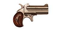 The original 19th century vest-sized pocket pistol was the Philadelphia Deringer. The advent of the metallic cartridge gave us the classic double barrel .41 Rimfire Remington Model 95 which achieved such widespread popularity, that it has completely overshadowed all other designs, becoming synonymous with the word "Derringer". The Remington double-barrel derringer design is still being manufactured (150 years after they were first introduced) by American Derringer, Bond Arms, and Cobra Arms, all of whom manufacture derringers in a variety of calibers from .22 long rifle to .45 Long Colt & .410 gauge.[2]