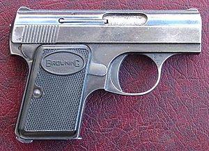 The first widely used and successfully semi-automatic .25 ACP pocket pistols were the FN Model 1905, Colt Model 1908 Vest Pocket and later the Baby Browning. The FN 1905 was designed and marketed along with .25 ACP cartridge in 1905. The M1905 is a very small 7-shot, striker-fired, single action, blow-back operated semi-automatic pistol. It features a grip safety and the manual thumb operated safety that locks the slide in the closed position when engaged.