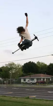 Extreme Pogo, or Xpogo, is an action sport which involves riding and performing tricks on extreme pogo sticks, defined as such by their durability and potential for height. Today's Xpogo sticks have the potential for over 10 ft. of height (measured from the ground to the bottom of the tip).[12] Extreme pogo is a relatively new extreme sport and is currently emerging into popular culture as evidenced by the growing number of Xpogo athletes around the globe, growing sales from extreme pogo companies,[13] the popularity of Xpogo athlete exhibition teams,[14] positive feedback and continued interest in Xpogo content on sites such as YouTube,[15] and the expanding scope of the annual World Championships of Xpogo, Pogopalooza.[16]