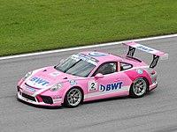 Raced in the Porsche Supercup since the 2017 season. Based on the latest 911 GT3 road car it features a larger 4.0-litre flat-six boxer engine, improved aerodynamics and an enlarged escape-hatch in the roof and is priced at €189,900 excluding taxes.[10]