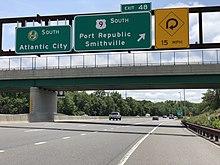 The Garden State Parkway passes through the city and is accessible at Interchange 48.[109] U.S. Route 9 passes through Port Republic,[110] as do County Route 575 and County Route 561 Alternate. A small piece of Route 167 is in the city.[111]