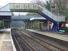The Manchester and Birmingham Railway opened a line through Poynton in 1845, which now forms part of the West Coast Main Line between London and Manchester.[12] Poynton station on this line offers local services to Manchester and Macclesfield. It is served by an hourly off-peak rail service to Stoke-on-Trent and Manchester Picadilly Monday–Saturday, with extra trains at peak times on weekdays. The Macclesfield, Bollington and Marple Railway was opened in 1869,[13] with stations at Higher Poynton and Middlewood. This line was closed in 1970 and was later converted into a "linear park" called the Middlewood Way.[13]