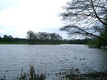 Sir George Warren bought the Worth estate in 1792. Worth Hall, now redeveloped as flats,[25] was originally the home of the Downes family of Worth; it lies within Davenport Golf Club. Several halls were built in Poynton Park, each one then demolished to make way for a new hall. The final hall, Poynton Towers, was demolished in the 1930s. The ornamental lake, known locally as Poynton Pool, was created in the 1760s by Sir George Warren, who dammed a tributary of Poynton Brook as part of his landscaping of the park. The dam itself served as the foundation for the turnpike.[26]