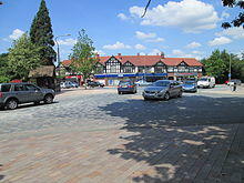 In December 2011, the village road network was reconstructed at the junction of Chester Road/Park Lane and London Road, creating the first "double roundel" for a high-traffic intersection.[32] Similar to a roundabout, the new junction reduces the four-lane approaches to two lanes, allowing pedestrians to cross quickly and safely allowing the elimination of traffic signals. Multiple coloured and textured cobbles separate traffic from pedestrian areas; however, it functions as a shared space, allowing pedestrians to cross anywhere that feels safe. According to the town, businesses have seen increased foot traffic and congestion has been considerably lessened. The total cost was £4m.[32]
