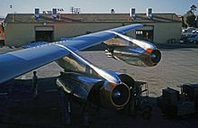 The Pratt & Whitney J57 (company designation: JT3C) is an axial-flow turbojet engine developed by Pratt & Whitney in the early 1950s. The J57 (first run January 1950[1]) was the first 10,000 lbf (45 kN) thrust class engine in the United States. The J57/JT3C was developed into the J75/JT4A turbojet, JT3D/TF33 turbofan, and PT5/T57 turboprop (of which only one was built).[2] The J57 and JT3C saw extensive use on fighter jets, jetliners, and bombers for many decades.