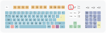 | Esc | F1 | F2 | F3 | F4 | F5 | F6 | F7 | F8 | F9 | F10 | F11 | F12 | PrtScn/ SysRq | Scroll Lock | Pause/ Break | |||||||||
