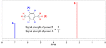 Proton nuclear magnetic resonance (proton NMR, hydrogen-1 NMR, or 1H NMR) is the application of nuclear magnetic resonance in NMR spectroscopy with respect to hydrogen-1 nuclei within the molecules of a substance, in order to determine the structure of its molecules.[1] In samples where natural hydrogen (H) is used, practically all the hydrogen consists of the isotope 1H (hydrogen-1; i.e. having a proton for a nucleus).