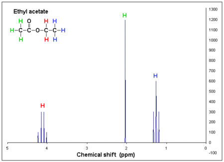 Proton NMR spectra of most organic compounds are characterized by chemical shifts in the range +14 to -4 ppm and by spin-spin coupling between protons. The integration curve for each proton reflects the abundance of the individual protons.