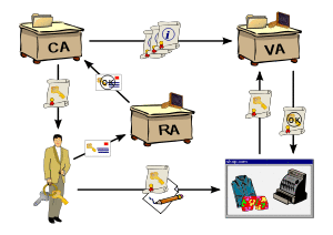 - A certificate management system managing things like the access to stored certificates or the delivery of the certificates to be issued;