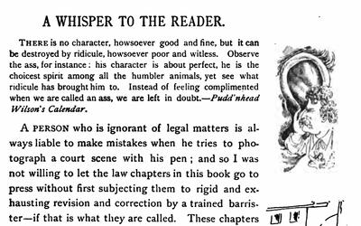 Each chapter begins with clever quotations from Pudd’nhead Wilson’s Calendar, a project of Wilson's which endears him to Judge Driscoll but further confirms everyone else's opinion of him as a pudd’nhead.[5]