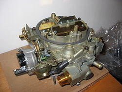 The Quadrajet is a "spread bore" carburetor; the primary venturis are much smaller than the secondary venturis. By comparison, a "square bore" carburetor has primary and secondary venturis of similar size. Most Quadrajets were capable of 750 cu ft (21,000 l)/min (cfm) maximum, but some rare Buick and Pontiac models[1] were capable of 800 cu ft (23,000 l)/min for use on high performance engines, and most 1984-1987 pickup trucks were also equipped with the 800-cfm carb. Most Quadrajets use a vacuum operated piston to move the primary metering rods to control the air-fuel ratio, allowing the mixture to be lean under low load conditions and rich during high load conditions. A less-common version uses a linkage driven off the primary throttle shaft to mechanically move the power piston. "E" (electronic control module controlled) series of Quadrajets use a computer controlled mixture control solenoid that responds to electronic signals from the throttle position and oxygen sensors via the computer, ideal for precise fuel metering and allowing additional fuel under load. The solenoid-controlled metering rods allow the fuel mixture to be very close to optimum, then the solenoid is pulse width modulated at about 6 Hz to fine-tune the air fuel ratio under closed loop conditions. The electronic versions have a throttle position sensor that is mounted inside the carburetor body, actuated by the accelerator pump lever.