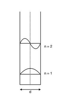 The subscript , () denotes the integer quantum number and is the wave vector associated with each state, given above. The associated discrete energies are given by: