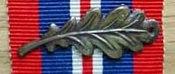 - From 1946[18] the plastic badge was replaced by a silver metal laurel leaf for civilians,[19] with a bronze oak leaf issued to armed forces personnel (including merchant seamen commended in time of war).[20] The bronze oak leaf insignia was identical to that awarded to signify a Mention in Despatches.[17] The devices were worn on the ribbon of the appropriate campaign medal, usually the Defence Medal for civilians and War Medal for servicemen, or directly to tunic or jacket if no medal had been awarded. Devices for commendations for post 1945 campaigns could be worn with the appropriate campaign medal if received.[21]