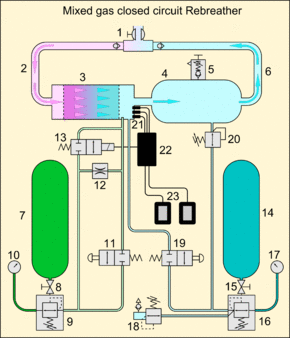 | Acronym | CCUBA (closed circuit underwater breathing apparatus); CCR (closed circuit rebreather), SCR (semi-closed rebreather) |