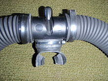 In some rebreathers, e.g. the Siebe Gorman Salvus, the oxygen cylinder has oxygen supply mechanisms in parallel. One is constant flow; the other is a manual on-off valve called a bypass valve; both feed into the same hose which feeds the counterlung.[11] In the Salvus there is no second stage and the gas is turned on and off at the cylinder.