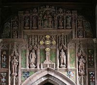 The entire western side of the chancel arch inside Holy Cross Church in Crediton forms an elaborate monument to Buller, designed by William Douglas Caröe with sculpture of St George by Nathaniel Hitch (1845–1938).[31][32] A brass mural tablet was erected in Crediton Church by his only daughter Georgiana Buller. The Wetherspoons public house in Crediton bears his name.[33]