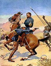 Buller became head of the troops stationed at Aldershot in 1898. He was sent as commander of the Natal Field Force in 1899 on the outbreak of the Second Boer War. On seeing the list of troops which would make up his Corps Buller is said to have remarked "well, if I can't win with these, I ought to be kicked." By early September 1899 he had serious doubts that the Boers could not easily be browbeaten, and that White's forces in Natal might receive some punishment if they deployed too far forward. He arrived at the end of October.[10] He was defeated at the Battle of Colenso, during what was later to become known as Black Week. Defeats at the Battle of Magersfontein and Battle of Stormberg also involved forces under his command. Because of concerns about his performance and negative reports from the field he was replaced in January 1900 as overall commander in South Africa by Lord Roberts. Defeats and questionable ability as commander soon earned him the nickname "Reverse Buller" among troops. He remained as second-in-command and suffered two more setbacks in his attempts to relieve Ladysmith at the battles of Spion Kop and Vaal Krantz. On his fourth attempt, Buller was victorious in the Battle of the Tugela Heights, lifting the siege on 28 February 1900, the day after Piet Cronje at last surrendered to Roberts at Paardeberg.[11] After Roberts took Bloemfontein (13 March 1900), Buller correctly predicted that the Boers would take to guerrilla warfare.[12] Later he was successful in flanking Boer armies out of positions at Biggarsberg, Laing's Nek and Lydenburg. It was Buller's veterans who won the Battle of Bergendal in the war's last set-piece action.