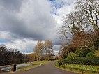 The park has an outer ring road called the Outer Circle (4.45 km) and an inner ring road called the Inner Circle (1 km), which surrounds the most carefully tended section of the park, Queen Mary's Gardens. Apart from two link roads between these two, the park is reserved for pedestrians (with the exception of The Broad Walk between Chester Road and the Outer Circle, which is a shared use path). The south, east and most of the west side of the park are lined with elegant white stucco terraces of houses designed by John Nash and Decimus Burton. Running through the northern end of the park is Regent's Canal, which connects the Grand Union Canal to London's historic docks. The 166-hectare (410-acre) park[3] is mainly open parkland with a wide range of facilities and amenities, including gardens; a lake with a heronry, waterfowl and a boating area; sports pitches; and children's playgrounds. The northern side of the park is the home of London Zoo and the headquarters of the Zoological Society of London. There are several public gardens with flowers and specimen plants, including Queen Mary's Gardens in the Inner Circle, in which the Open Air Theatre stands; the formal Italian Gardens and adjacent informal English Gardens in the south-east corner of the park; and the gardens of St John's Lodge. Winfield House, the official residence of the U.S. Ambassador to the United Kingdom, stands in private grounds in the western section of the park, near to the capital's first large mosque.