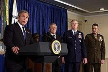 For four decades, General Richard Myers has served our Nation with honor and distinction. He flew some 600 combat hours in the Vietnam War. He later served as Commander in Chief of North American Aerospace Defense Command and U.S. Space Command. As Chairman of the Joint Chiefs of Staff, General Myers played a central role in our Nation's defense while devoting himself to the well-being of the men and women who wear the uniform of the United States Armed Forces. The United States honors General Richard Myers for his dedication to duty and country and for his contributions to the freedom and security of our Nation.[14]